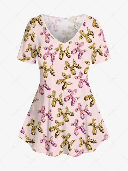 Plus Size Two Tone Balloon Dog Printed Women T-shirt