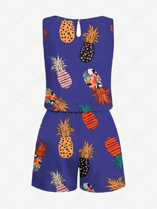Plus Size Colorful Pineapple Printed Hawaii Drawstring Pocket Romper