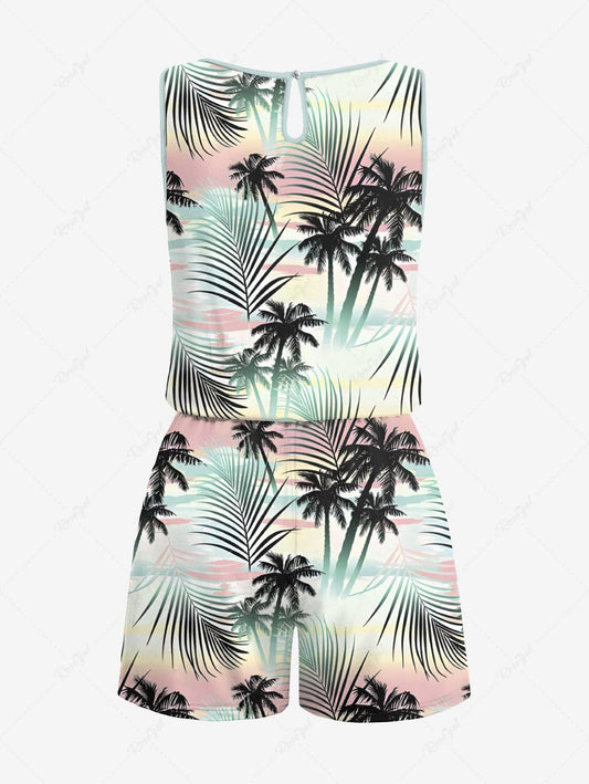 Plus Size Tropical Leaf Coconut Tree Printed Cinched Hawaii Romper