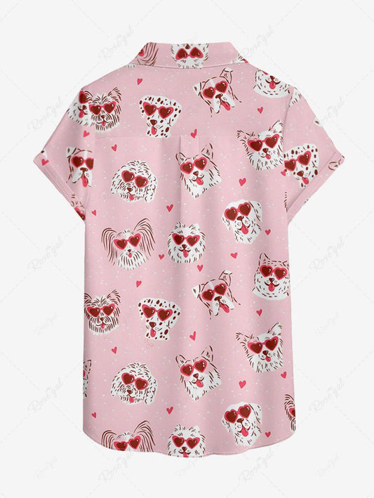 Cute Dog Heart Sunglasses Printed Button Pocket Women Shirt