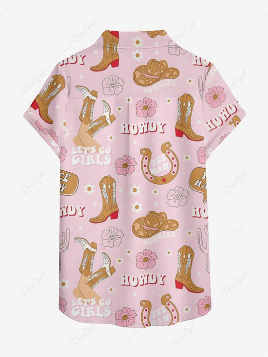 Cactus Hat Boots Floral Letters Printed Hawaii Western Cowboy Style Women Shirt
