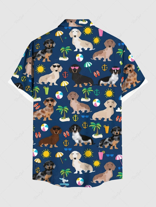 Plus Size Coconut Tree Sun Juice Colorful Dog Printed Hawaii Button Pocket Women Shirt