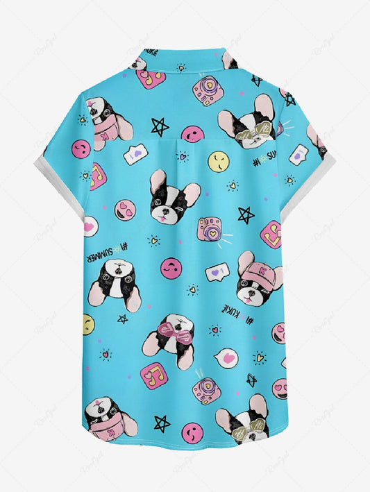 Smiley Face Cute Dog Star Music Symbol Printed Button Pocket Women Shirt