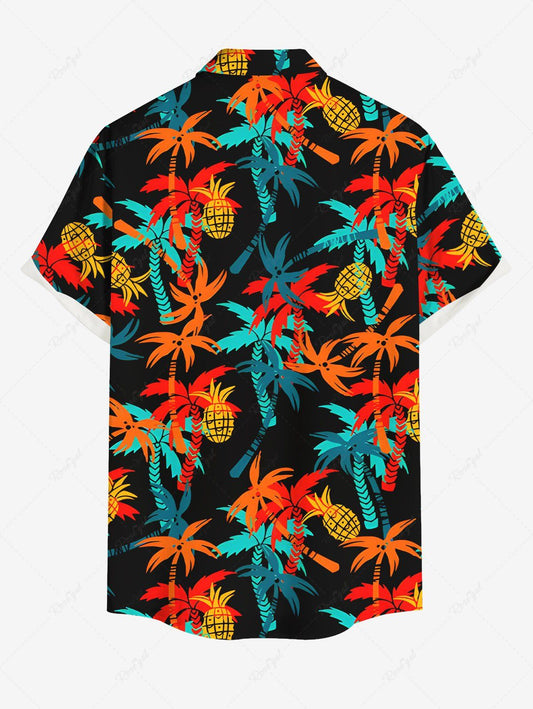 Plus Size Colorful Coconut Tree Pineapple Printed Buttons Pocket Hawaii Women Shirt