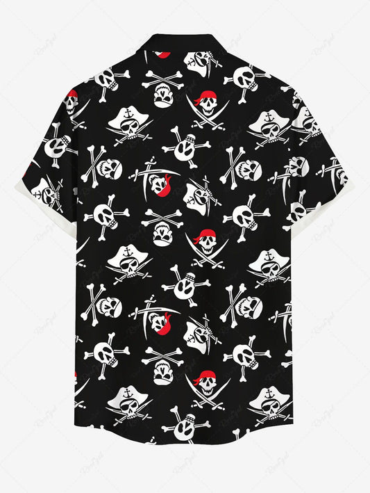 Plus Size Skulls Pirate Dagger Printed Buttons Pocket Hawaii Women Shirt