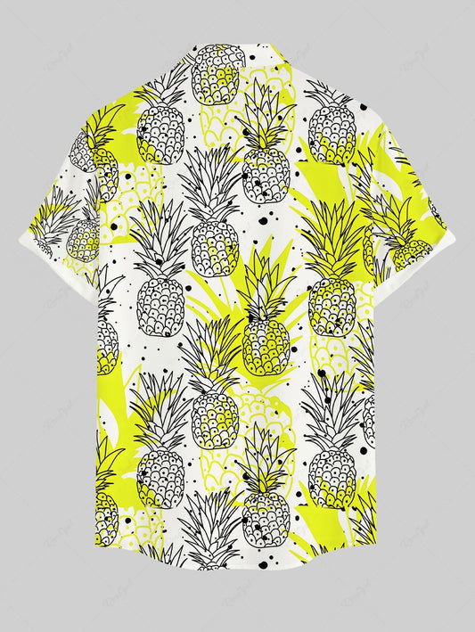 Plus Size Pineapple Paint Splatter Printed Buttons Pocket Hawaii Women Shirt