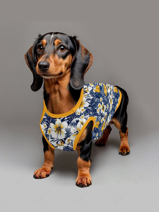 Tropical Leaf Flowers Print Hawaii Tank Top and Romper Dog and Owner Matching Outfits