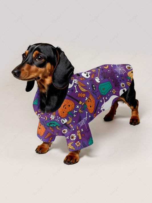 Halloween Skulls Pumpkin Spider Bat Ghost Print Shirt And Dress Dog and Owner Matching Outfits