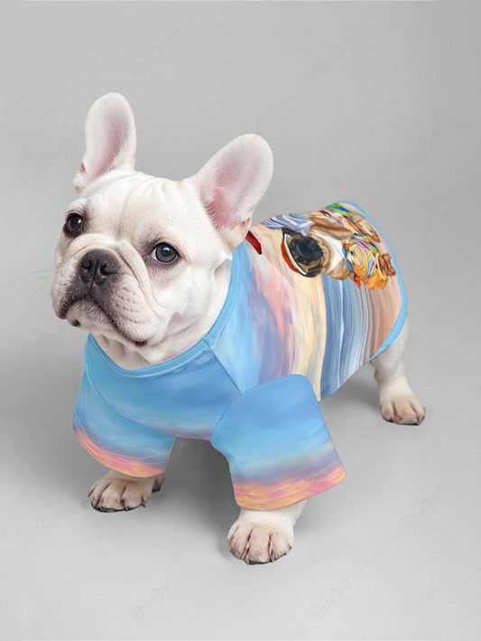 Cute Puppy Sea Beach Ombre Sky Print T-shirt Dog And Owner Matching Outfits