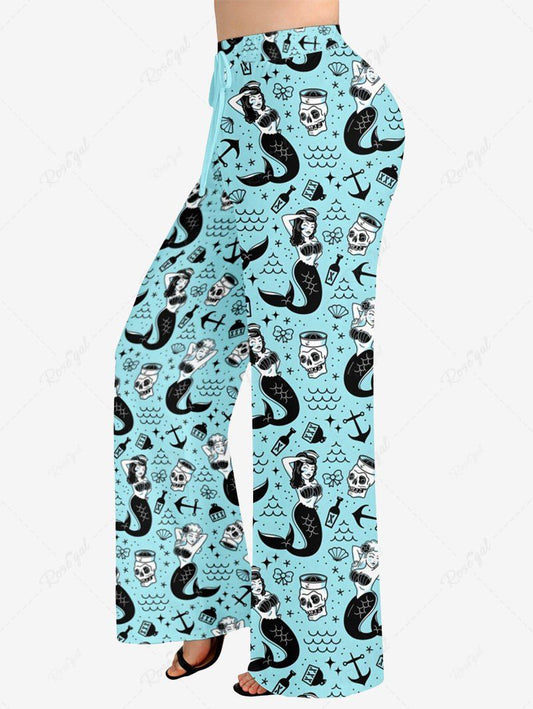 Pantalon large à rayures, nœud papillon, imprimé ancre, style hawaïen, grande taille, avec cordon de serrage, motif tête de mort, coquillage, sirène