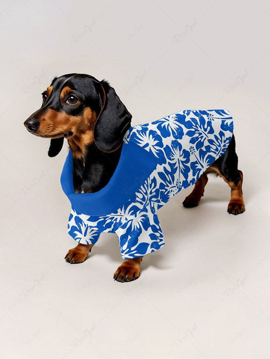 T-shirt hawaïen à imprimé feuilles tropicales et fleurs d'hibiscus pour animaux de compagnie