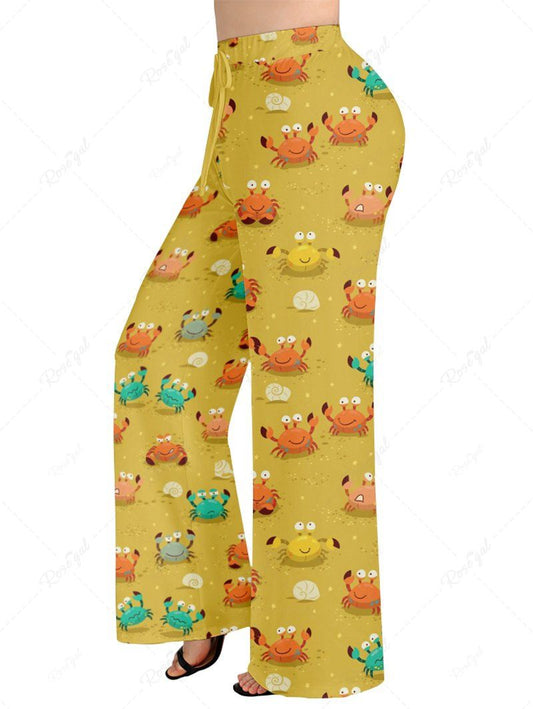 Pantalon large hawaïen à cordon de serrage et imprimé coquillages de crabe grande taille
