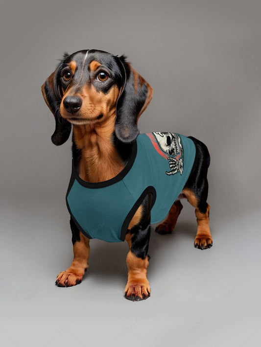 Débardeur et t-shirt à imprimé floral et vagues de la mer avec crâne et squelette pour homme, tenues assorties pour chien et propriétaire