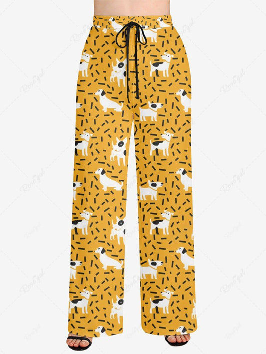 Pantalon large à cordon de serrage imprimé chien grande taille Hawaii
