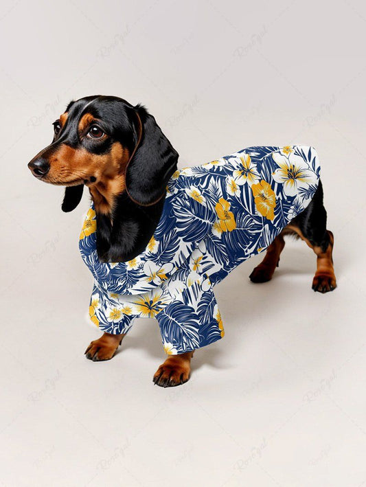 Tropical Leaves Hibiscus Floral Print Hawaii Shirt Pants Dog And Owner Matching Outfits