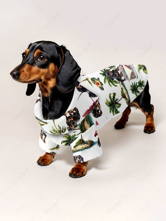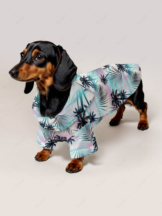 Tropical Leaf Coconut Tree Print Hawaii Shirt and Romper Dog and Owner Matching Outfits