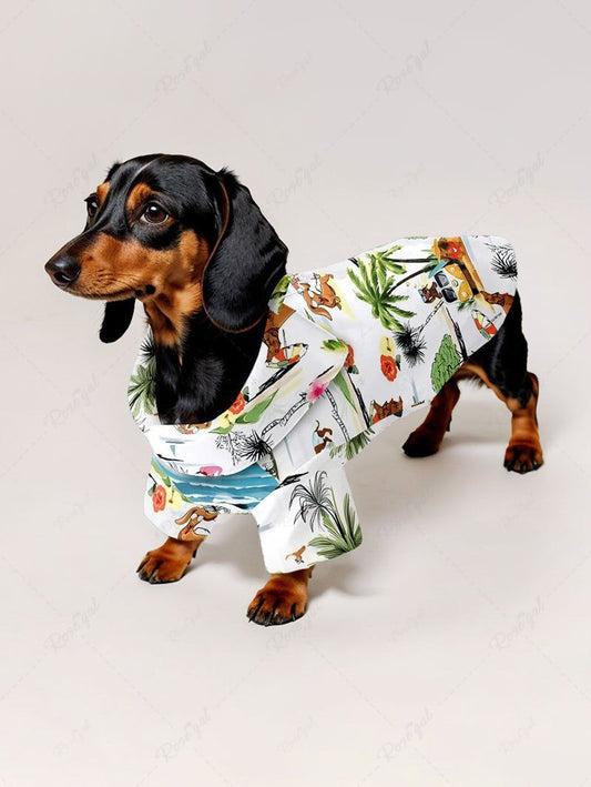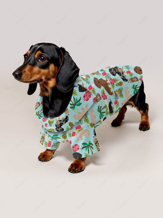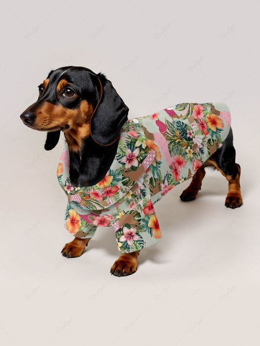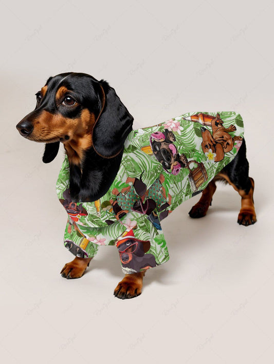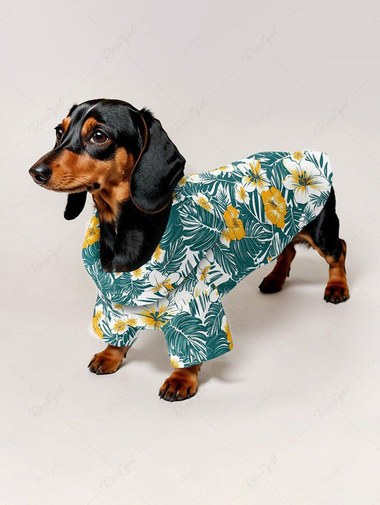 Tropical Leaves Floral Print Hawaii Shirt Romper Dog And Owner Matching Outfits