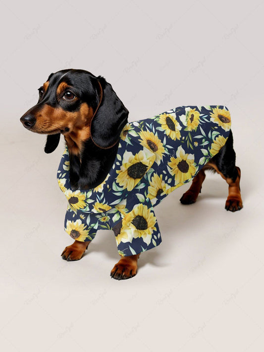 Sunflower Leaf Printed Hawaii Shirt Dress Dog And Owner Matching Outfits