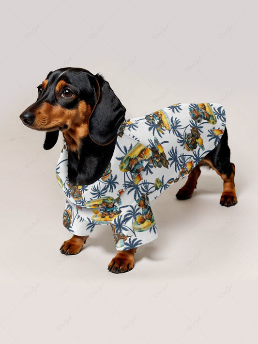 Coconut Tree Tropical Leaf Print Hawaii Shirts Dog and Owner Matching Outfits