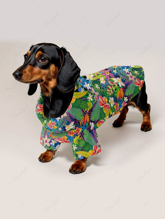 Tropical Leaves Hibiscus Floral Print Hawaii Shirt Dog And Owner Matching Outfits
