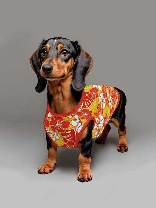 Tripical Leaf Hibiscus Flowers Print Hawaii Tank Top and Shirt Dog and Owner Matching Outfits