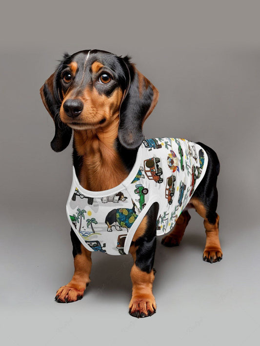 Coconut Tree Cars Dogs Sea Waves Print Hawaii Tank Top and Shirt Dog and Owner Matching Outfits