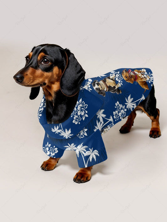 Dogs Coconut Tree Flowers Print Hawaii Shirts Dog and Owner Matching Outfits