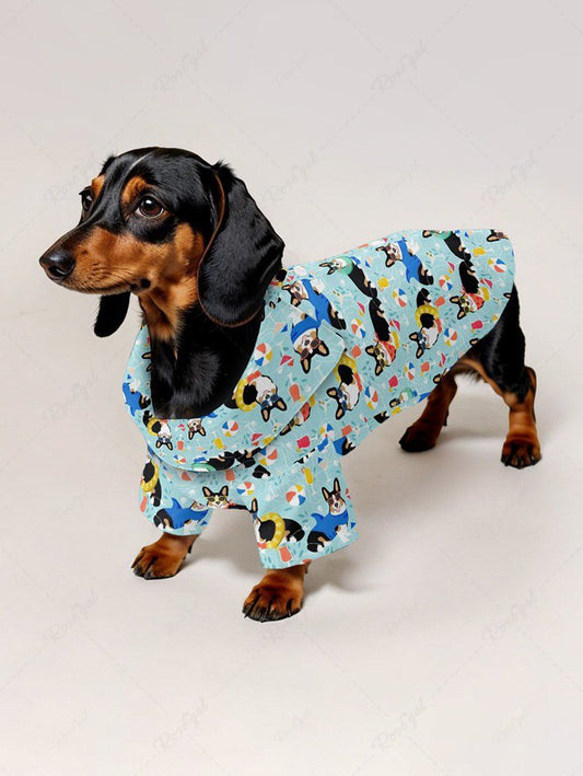Cute Puppy Swimming Ring Ball Print Hawaii Shirt Dog And Owner Matching Outfits