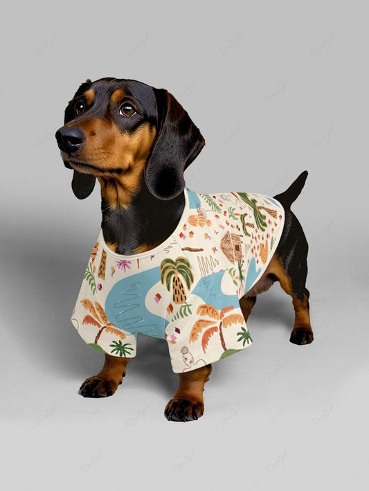 Coconut Tree Sun Cute Puppy Print Hawaii Shirt Dog And Owner Matching Outfits