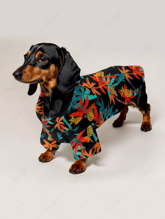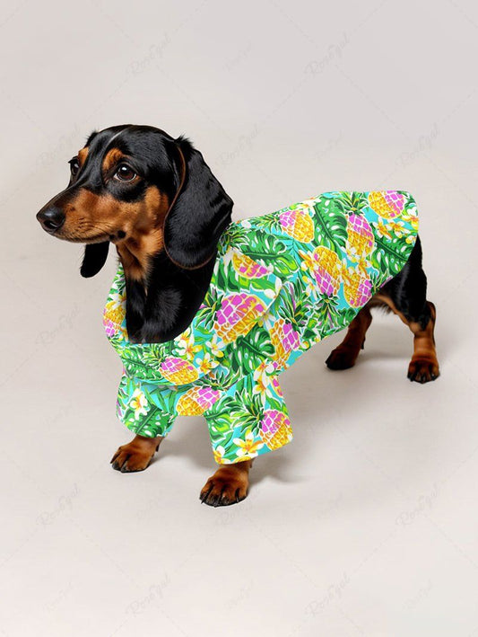 Topical Leaf Flowers Pineapple Print Hawaii Shirt Dog And Owner Matching Outfits