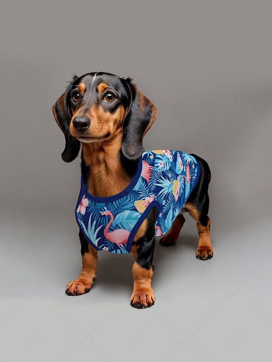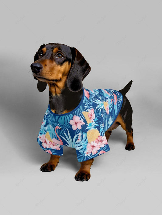 Tropical Leaf Flowers Pineapple Flamingo Print Hawaii Tank Top and Romper Dog and Owner Matching Outfits