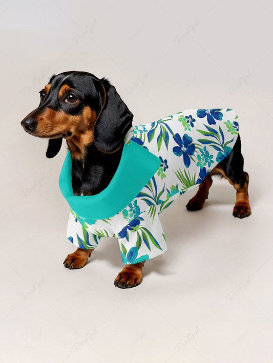 Chemises hawaïennes à imprimé de fleurs et de feuilles tropicales Tenues assorties pour chien et propriétaire