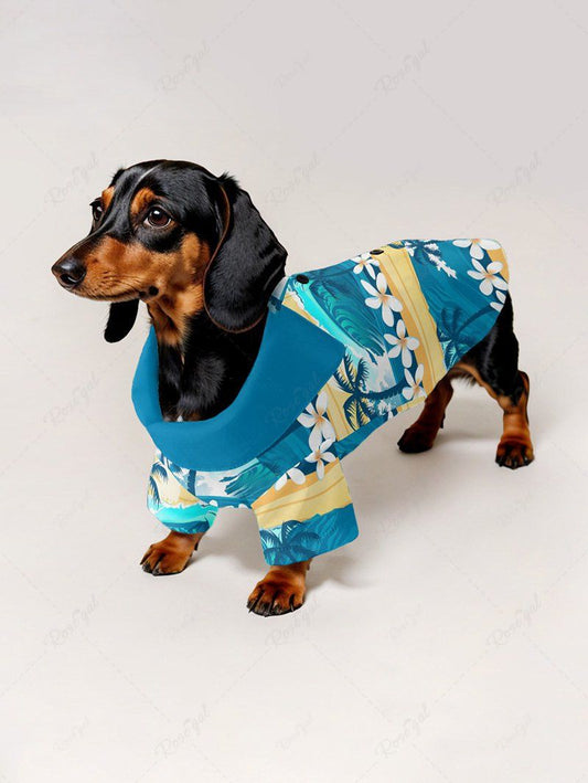 Chemises hawaïennes imprimées de fleurs de cocotier et de vagues de la mer Tenues assorties pour chien et propriétaire