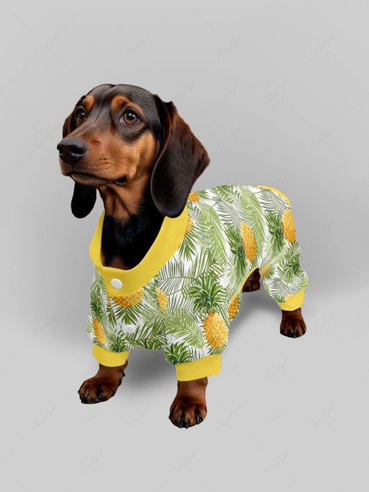 Pyjama imprimé ananas à feuilles tropicales hawaïennes et pantalon large pour hommes, tenues assorties pour chien et propriétaire