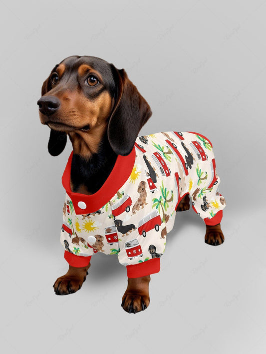 Pyjama imprimé cocotiers hawaïens, pantalon, bus, soleil, tenues assorties pour chien et propriétaire