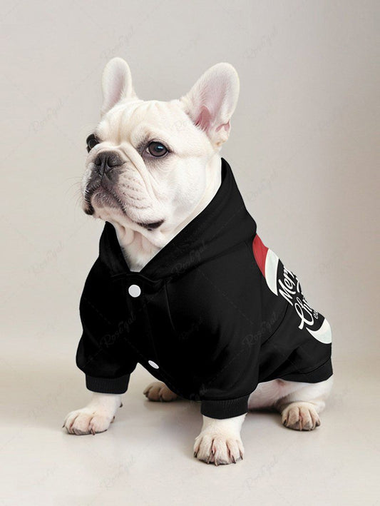 Sweat à capuche imprimé Père Noël avec lettres et chapeau de Noël pour chien et propriétaire