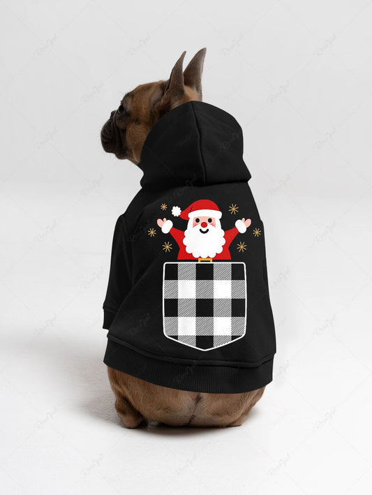 Sweat à capuche et pantalon imprimés Père Noël avec chapeau de Noël et carreaux pour chien et propriétaire