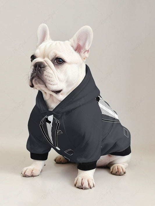 Sweat à capuche imprimé en 3D avec col à revers et boutons en forme de nœud papillon pour chien et propriétaire