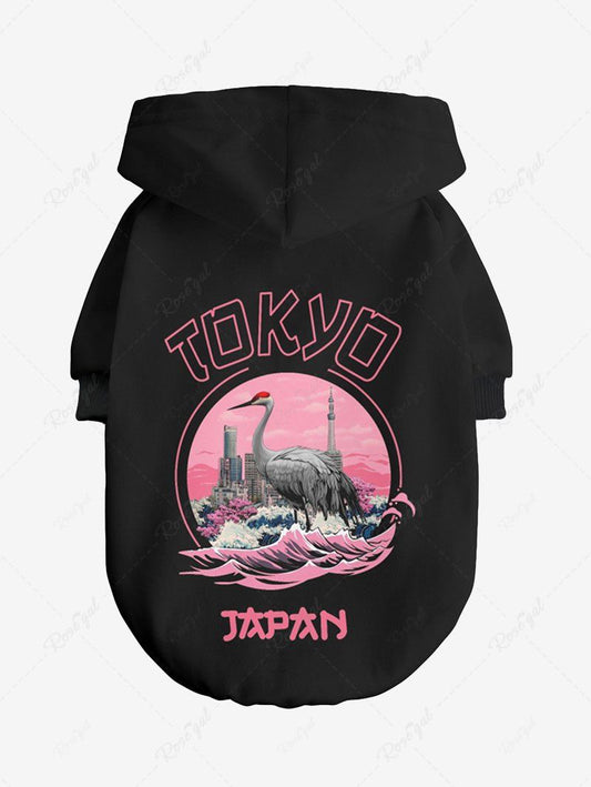 Sweat à capuche imprimé grue à couronne rouge Tokyo Letters pour chien et propriétaire, tenues assorties