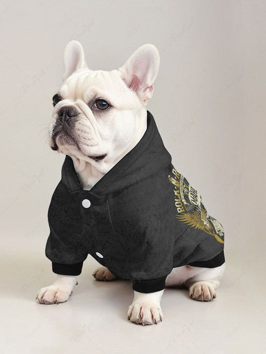 T-shirt à capuche imprimé avec lettres et ailes de crâne, tenues assorties pour chien et propriétaire