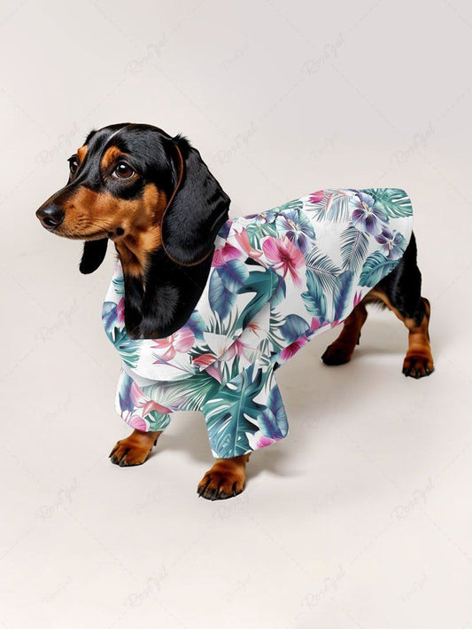 Tropical Leaf Flower Printed Hawaii Shirt Romper Dog And Owner Matching Outfits
