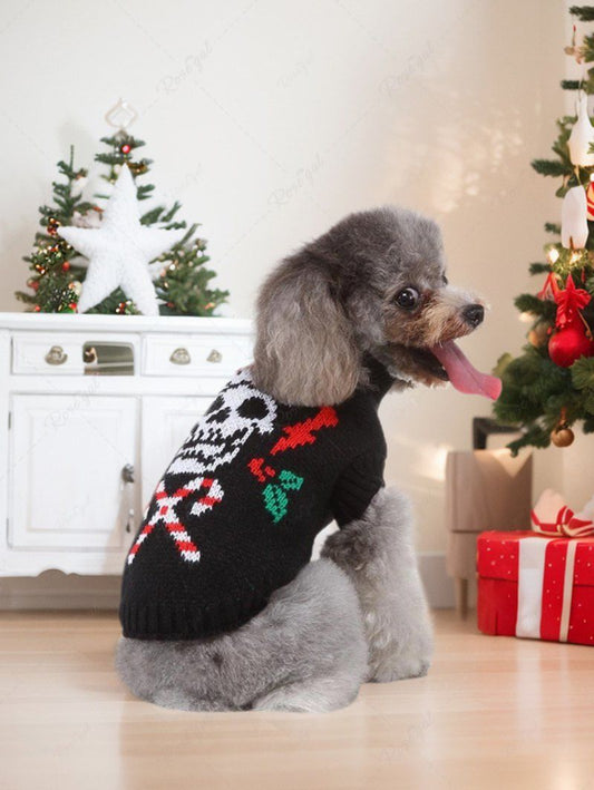 Pull imprimé crâne de Noël Père Noël bonbons nœud papillon tenues assorties pour chien et propriétaire