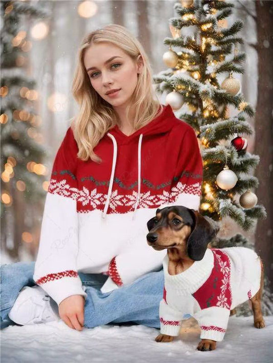 Sweat à capuche et pull de Noël en tricot 3D avec imprimé flocon de neige, tenues assorties pour chien et propriétaire
