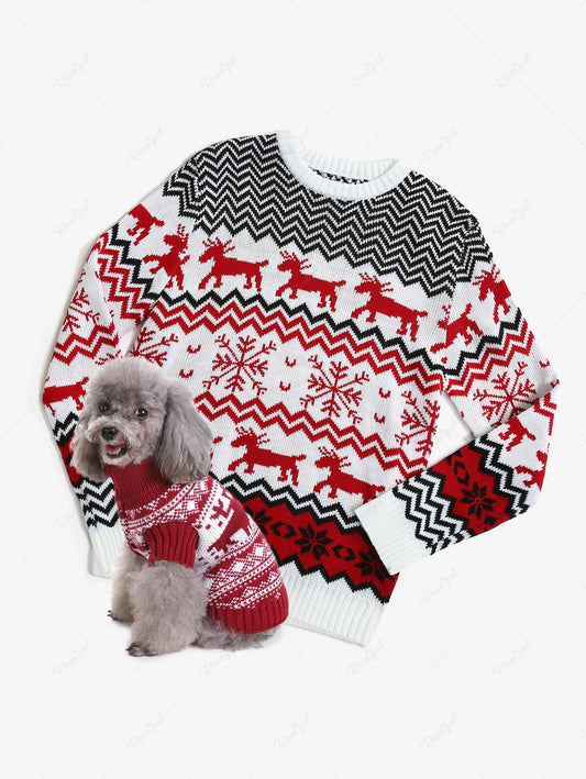 Pull de Noël à imprimé flocon de neige et élan pour chien et propriétaire, tenues assorties