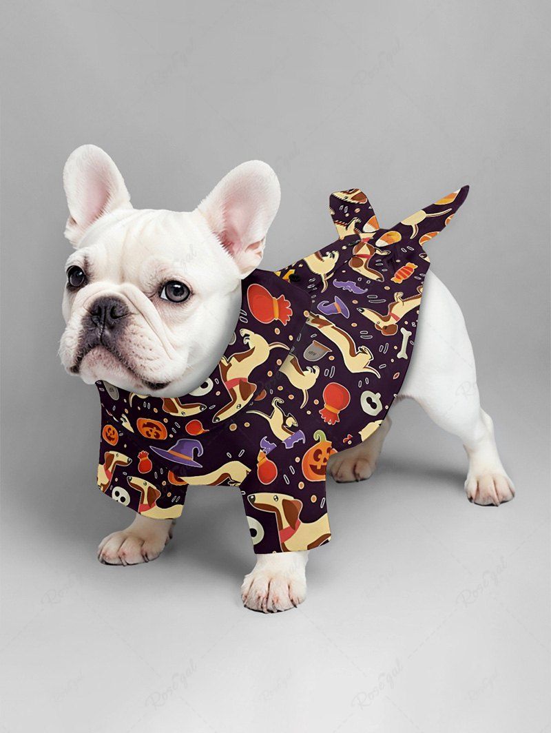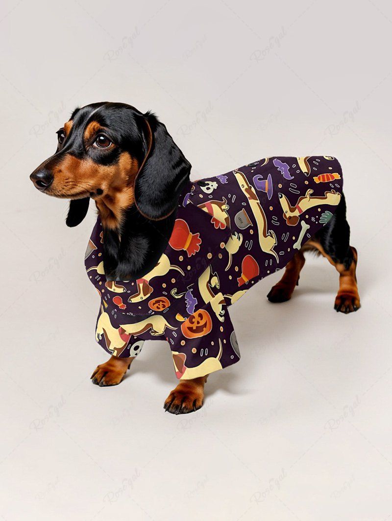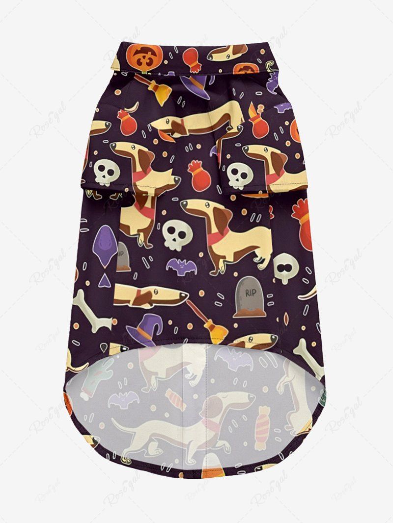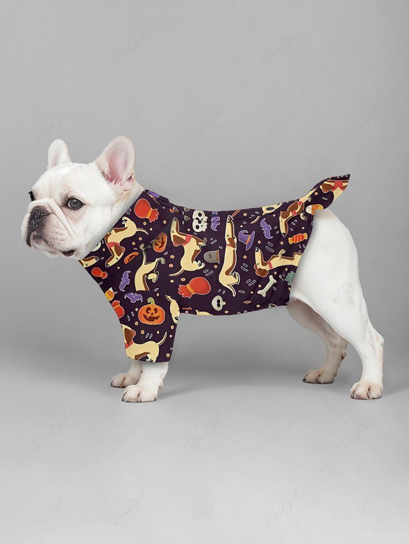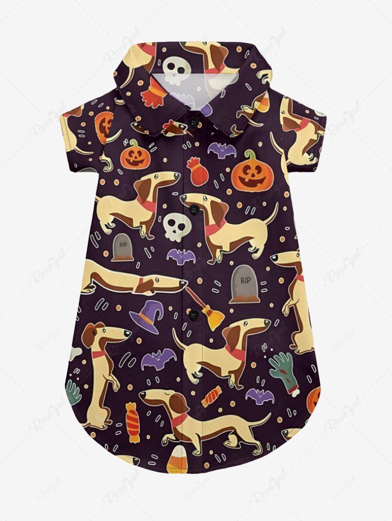 Pet's Dog Skull Pumpkin Bat Candy Print Halloween Button Shirt