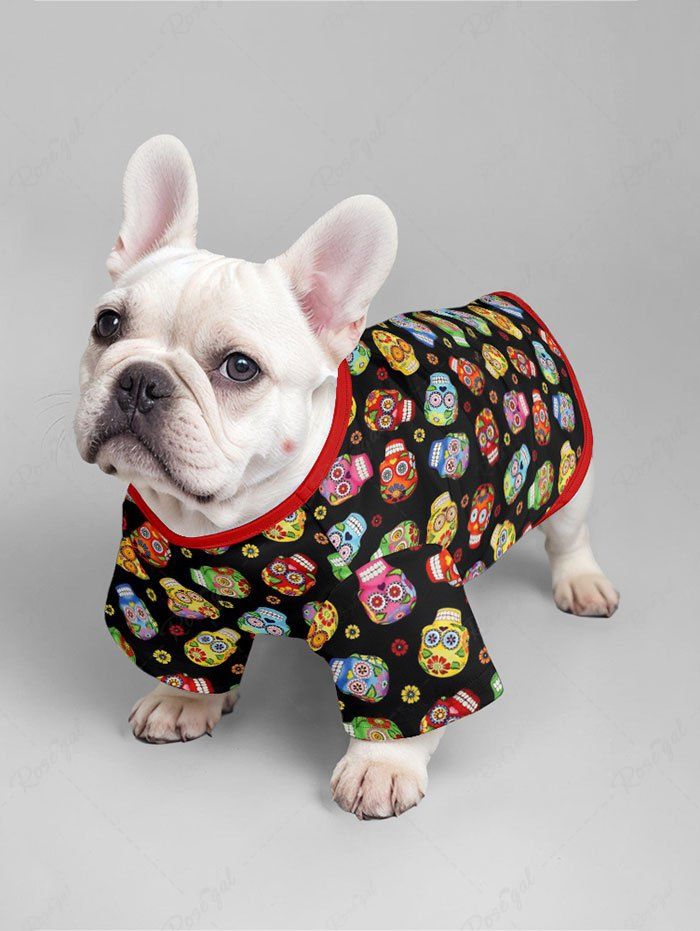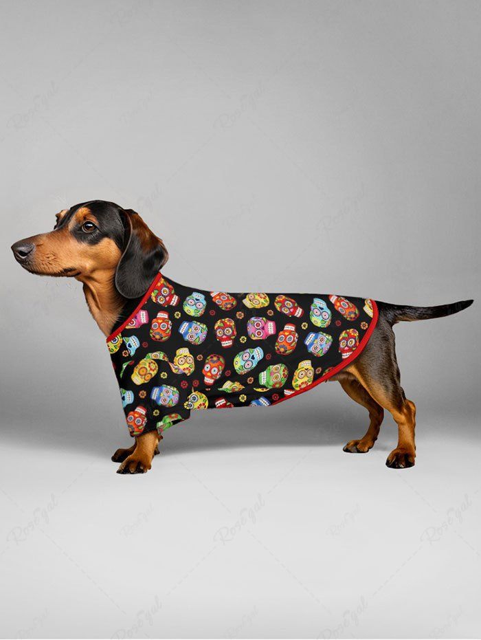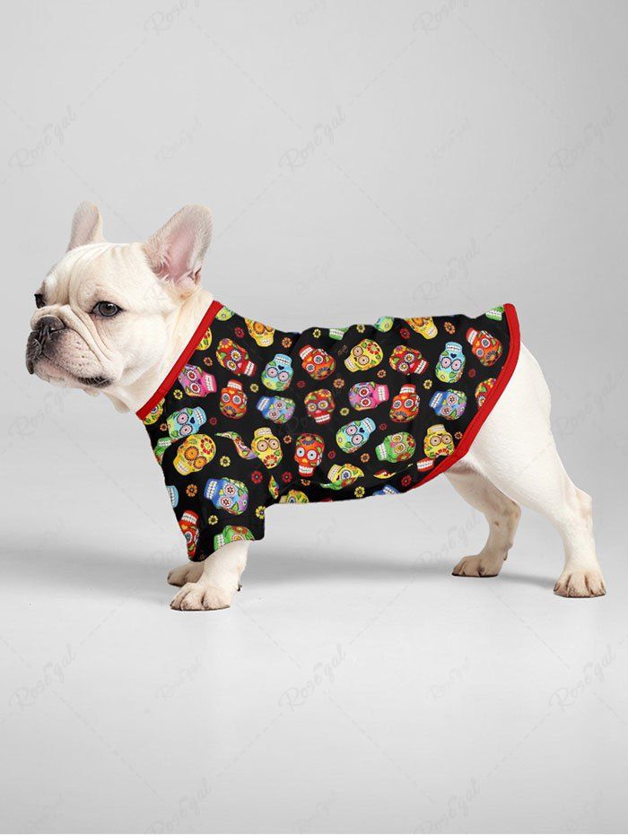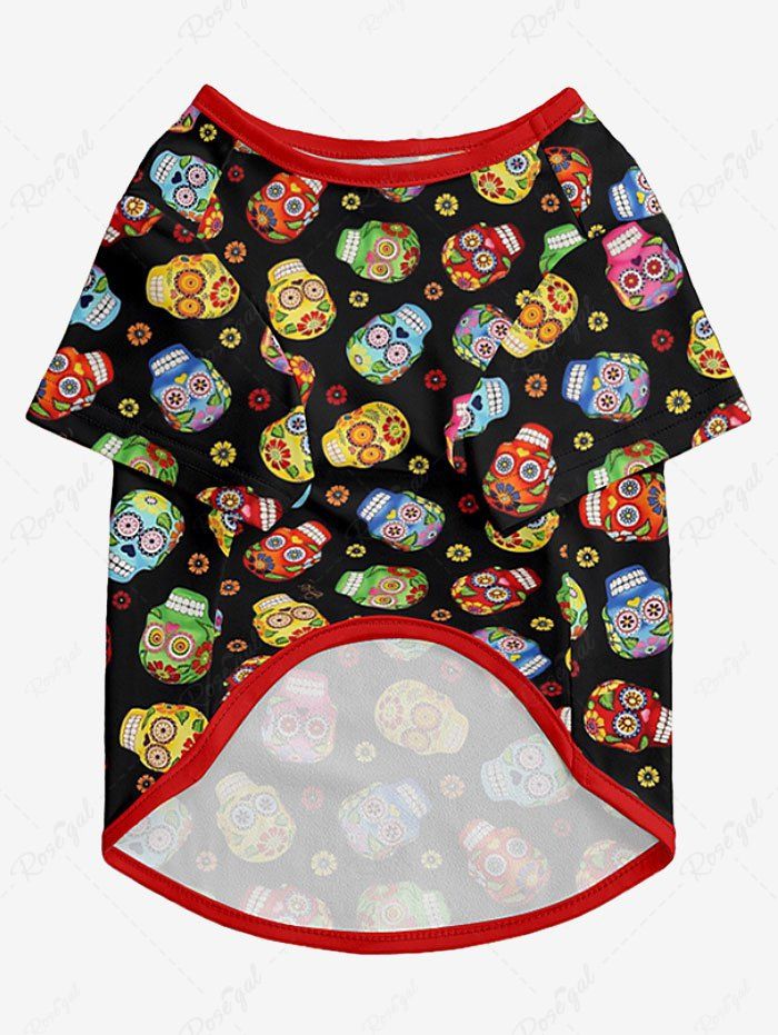 Pet's Halloween Skulls Flowers Print T-shirt