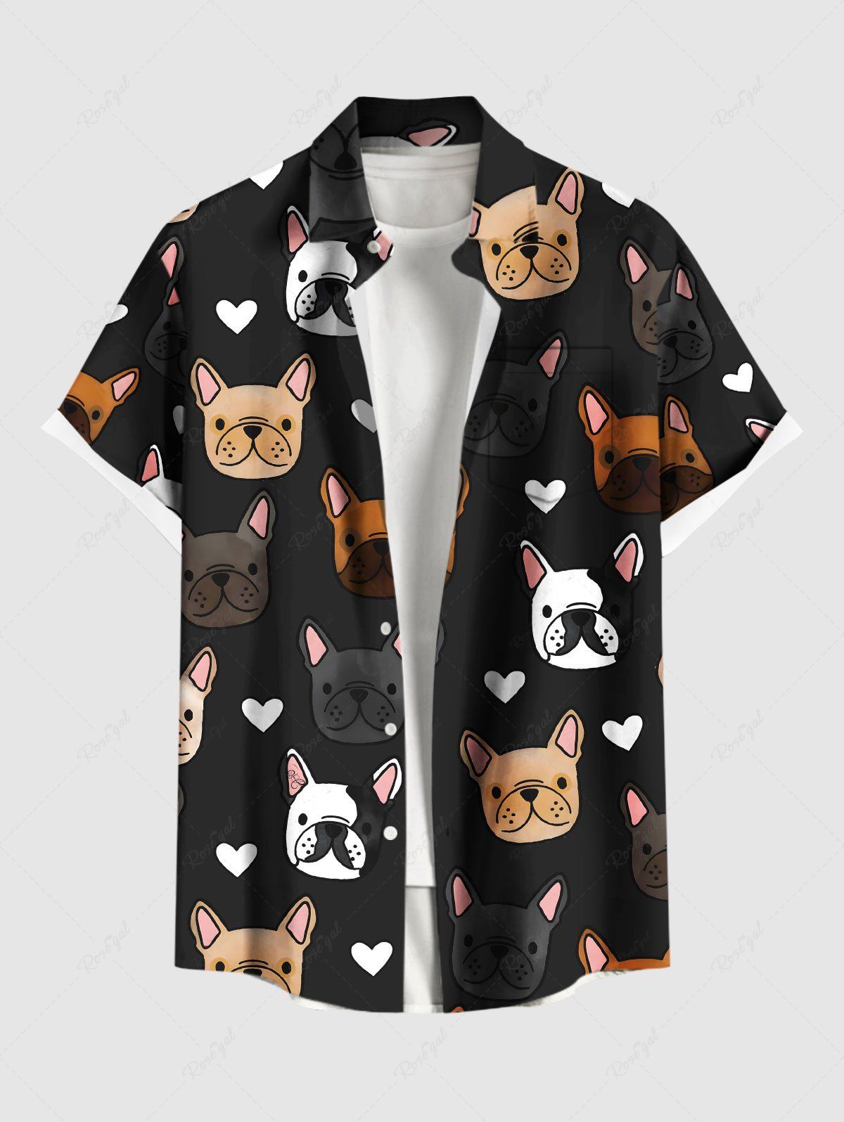 Plus Size Cute Dog Heart Print Button Pocket Shirt For Men