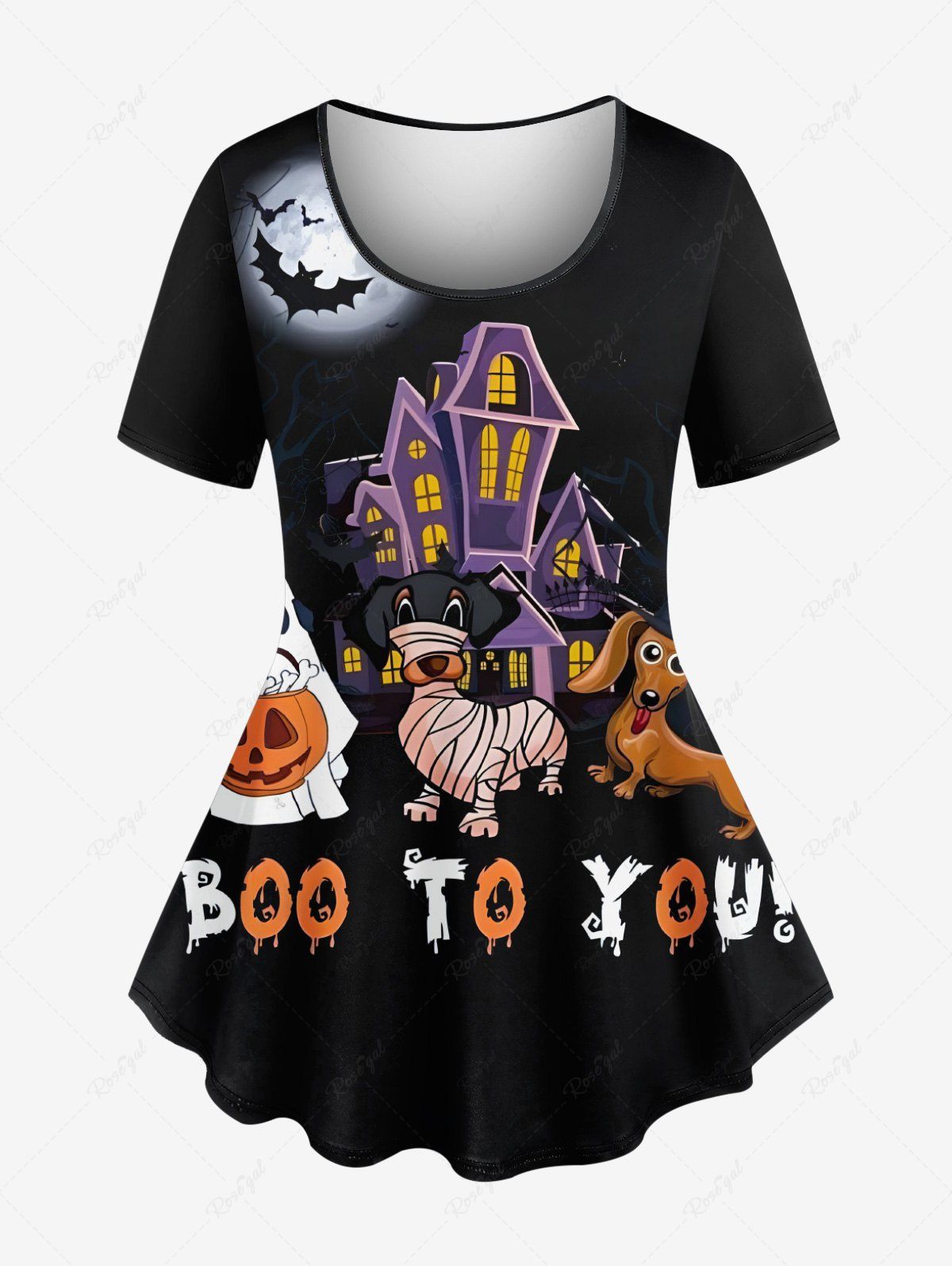 Plus Size Halloween Ghost Pumpkin Dog Moon Bat Print T-shirt