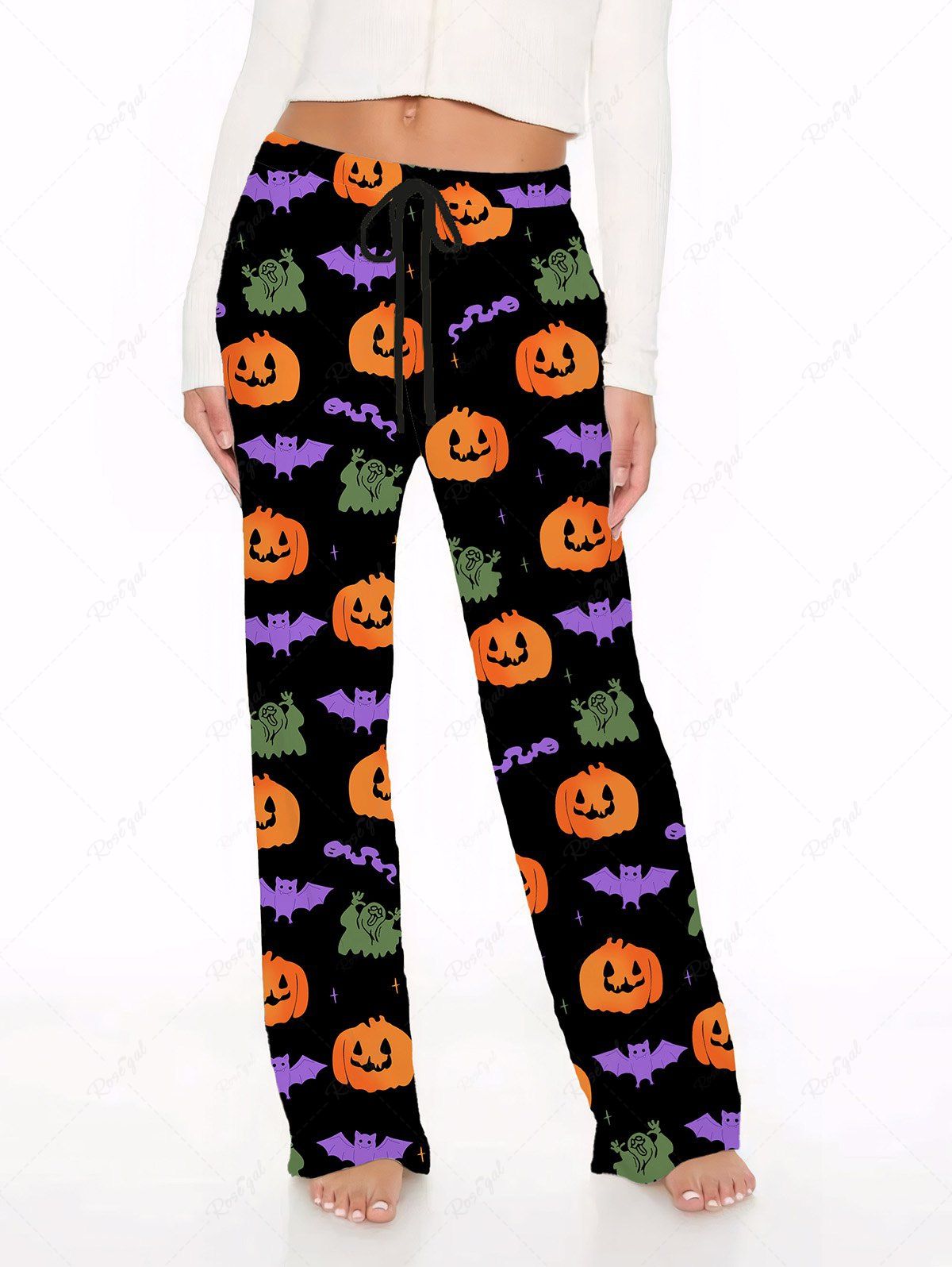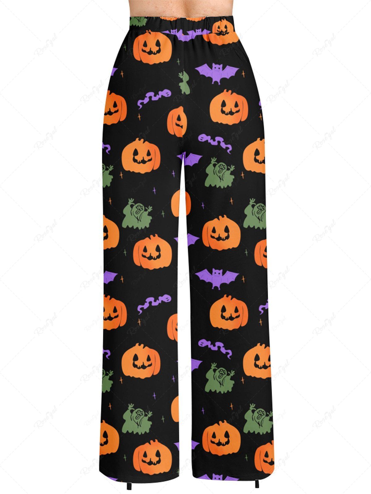 Plus Size Halloween Pumpkin Bat Ghost Print Drawstring Wide Leg Pants