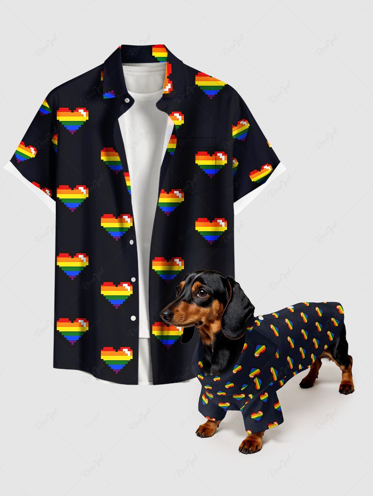 Rainbow Heart Print Shirts Dog and Owner Matching Outfits